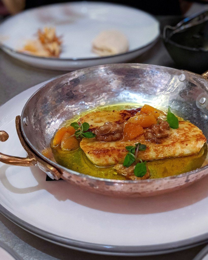 Anglum sheep cheese, walnut, dried apricot, London honey.
